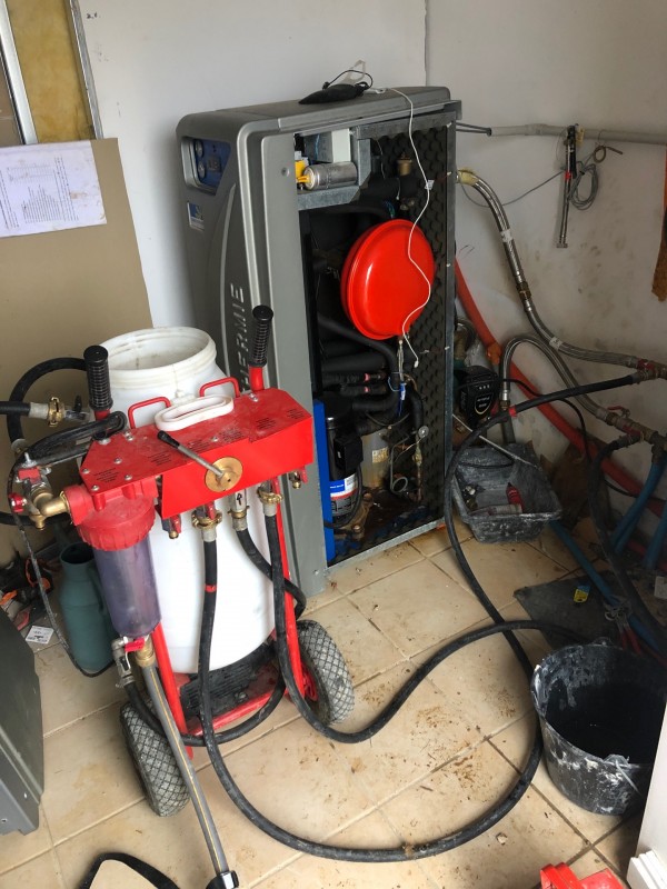 Le désembouage a relevé peu de matières ferreuses, plutôt des filaments bactériens de couleur verte.