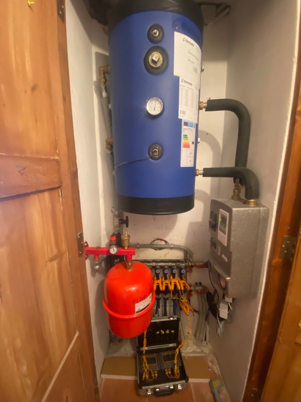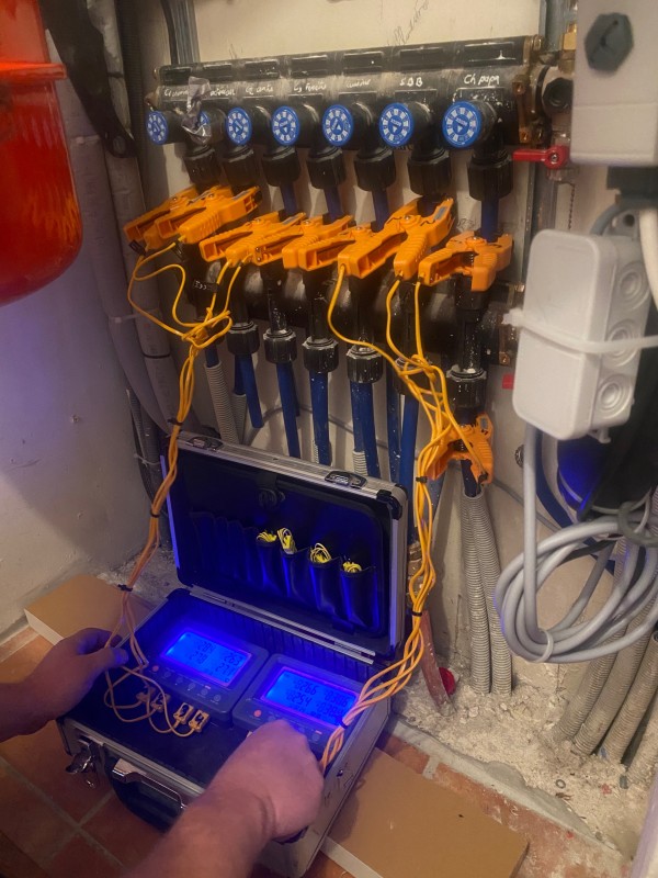 LB énergies a été sollicité pour installer toute la partie hydraulique de ce poêle à granulé hydraulique sur plancher chauffant, vendu et posé par Archiflamme. La station hydraulique sur bouteille de découplage a été installée dans un placard adjacent et les lignes de liaisons ont été passées sous la baignoire. Une station de régulation avec sonde extérieure gère le plancherchauffant. Le poêle fonctionne quant a lui sur un delta de température de remplissage de la bouteille. Un filtre Coroxyl et un vase d’expansion complète l’installation. Enfin, les boucles de plancherchauffant ont été équilibrées selon la méthode développée par LB Energies avec sa station de mesure.