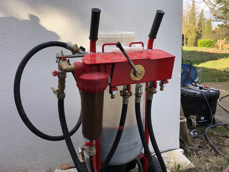 opération de désembouage avec deux machines différentes, selon le contexte et les emmetteurs de chaleur. La société travaille en étroite collaboration avec deux ingénieurs chimistes qui lui fabriquent les produits de traitement et de prévention COROXYL.