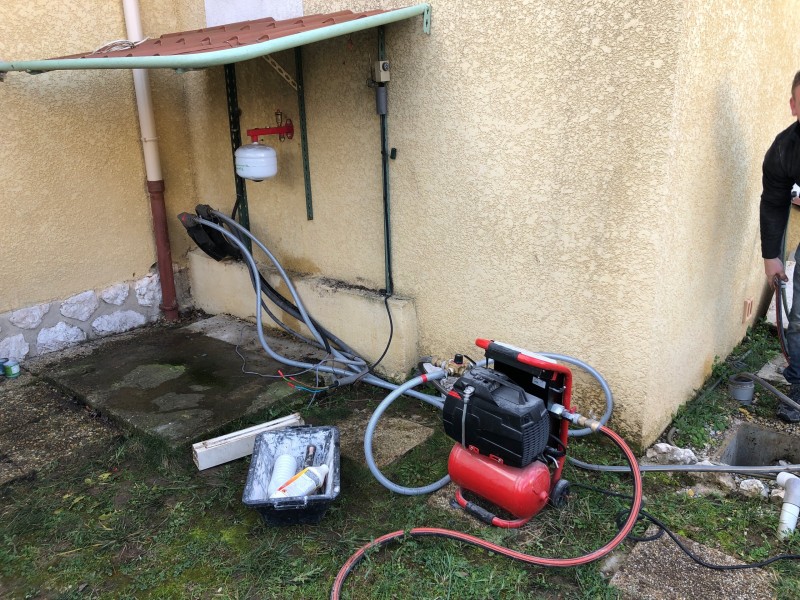 C’est dans le cadre d’un changement de la pompe à chaleur de cette villa de 120 m2 de plancher chauffant que le désembouage a été effectué, avec le système hydrodynamique Ropuls.