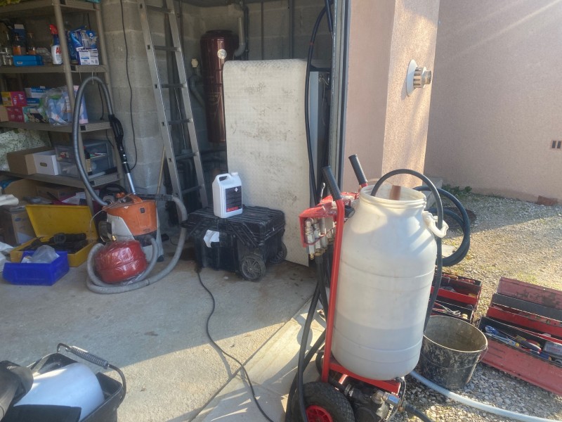 désembouage sur un plancher chauffant de plus de quinze ans. Un