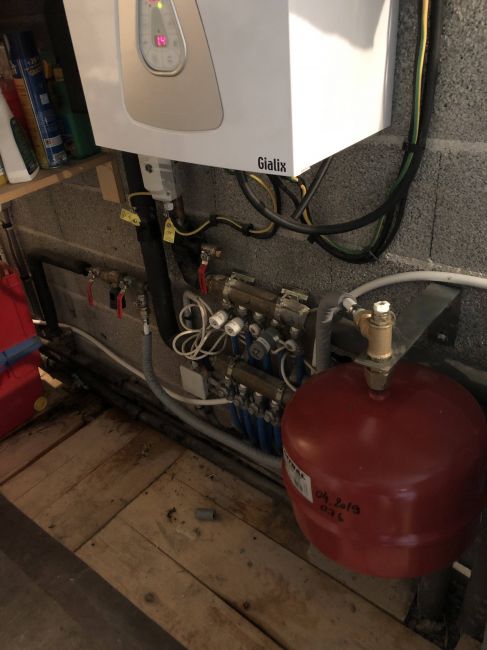 Un vase d’expansion a été ajouté, externe à la chaudière. Le vase de celle ci était défaillant et trop petit, car accolé en interne à la chaudière.