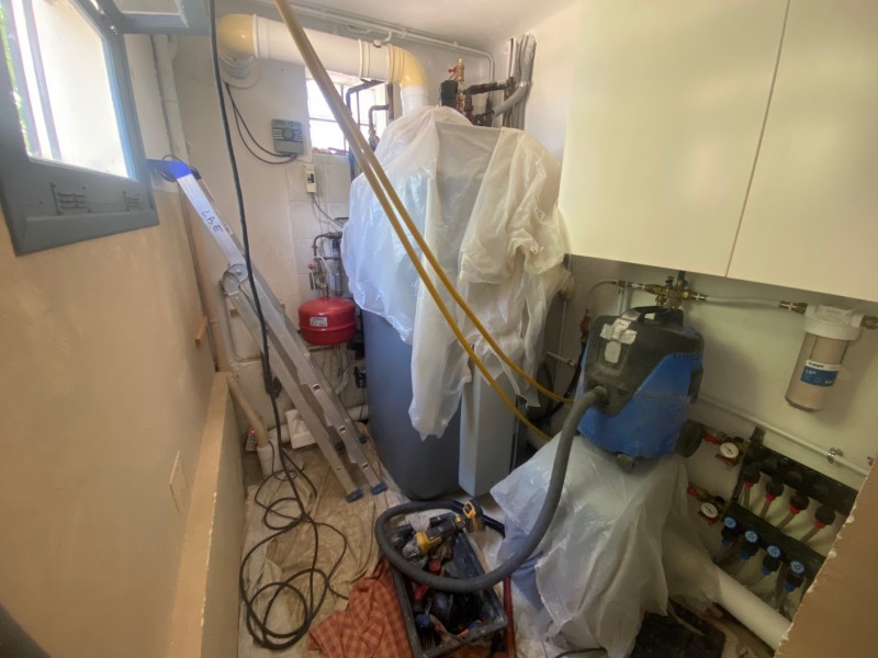 Sérieux désembouage sur plancher chauffant vers Saint Maximin sur une réseau chauffé par une chaudière solaire Rotex GSU, nécessitant de l’entretien. Un filtre à boue magnétique a été posé, les purgeurs changés et le réseau nettoyé sous COROXYL. Compte tenu du fait que ce nettoyage du réseau de chauffage a été effectué en été, un retour est prévu en octobre novembre pour l’équilibrage hydraulique des boucles entres elles, sur la bases de relevés de températures.