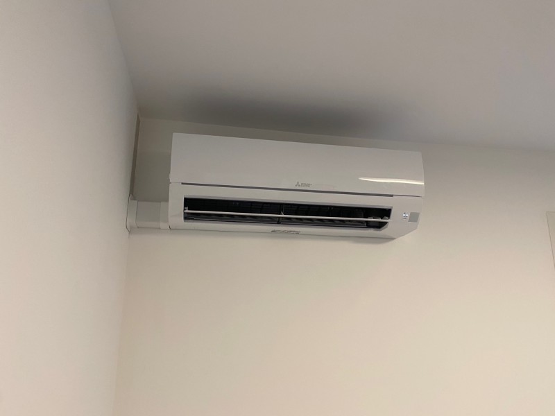 Installation soignée d’une climatisation Mitsubishi dans une copropriété récente à LUYNES, près d’Aix en Provence. L’installation a nécessité le carotage au plus près des unités intérieures de climatisation. Une goulotte de liaison a été installée dans une chambre, abritant une pompe de relevage. Effectivement le passage ne pouvait pas se faire depuis l’extérieur.