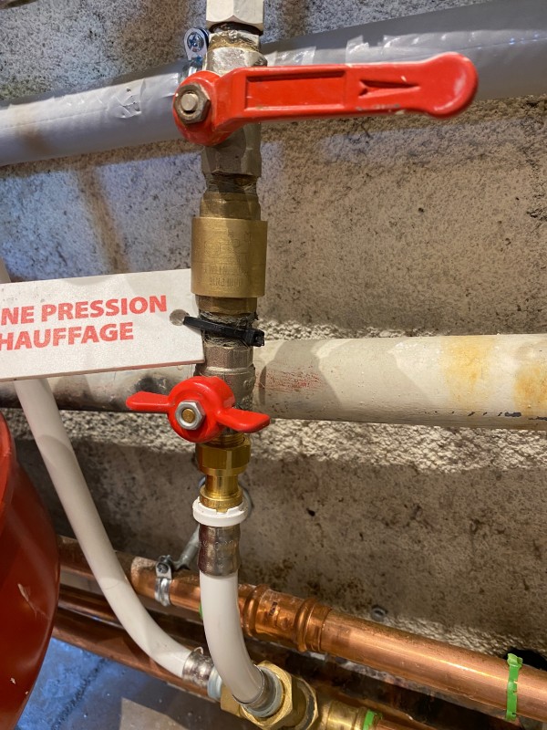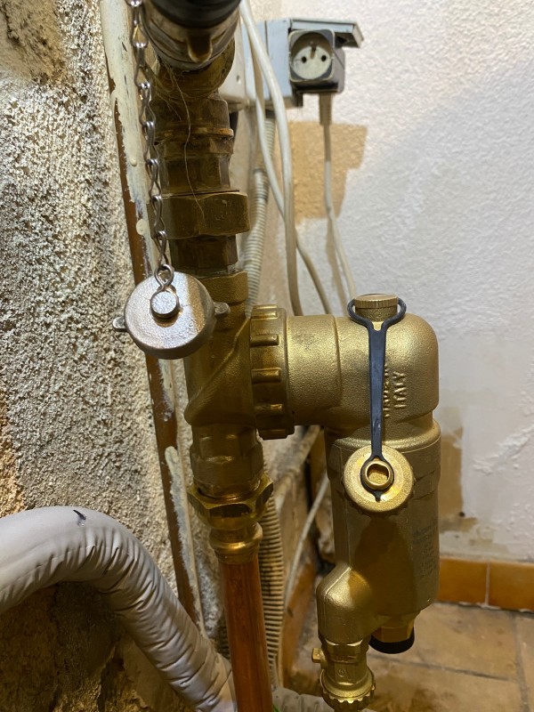 Deux vannes de service et un filtre à particule complètent l’installation.