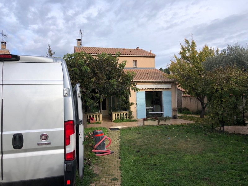 Pose d’une climatisation pour chauffer et rafraîchir le salon de cette villa à Bouc Bel Air, en complément du chauffage assuré par la chaudière à gaz.