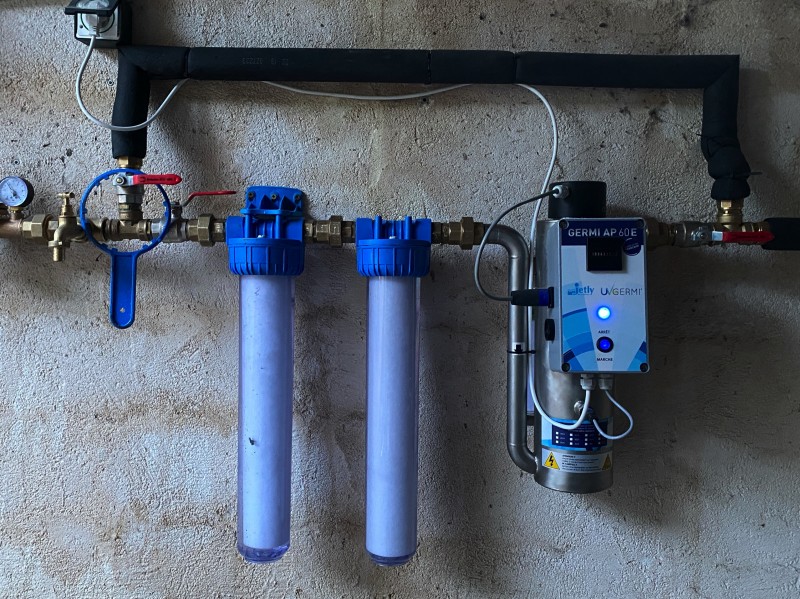Des grands filtres ont été choisis pour limiter le renouvellement des cartouches. Le système de traitement de l’eau par UV Jetly AP 60 a été proposé pour un débit important et une capacité de traitement de l’eau par rayonnement UV maximale.