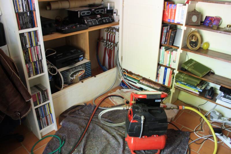 Nous avons donc nettoyé les tubes du plancher qui étaient emboués avec une pompe air/eau ROPULS, associant un compresseur et une pompe, avec une alternance des cycles de nettoyage, boucle par boucle.Un désembouant a été utilisé au préalable, afin d'améliorer la dissolution des boues avant leur extraction.