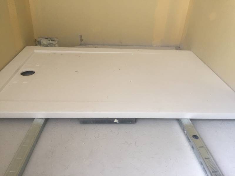Les receveurs extra-plats en résine ont été posés dans les règles de l'art, sous élastomère, encollés sur la dalle.