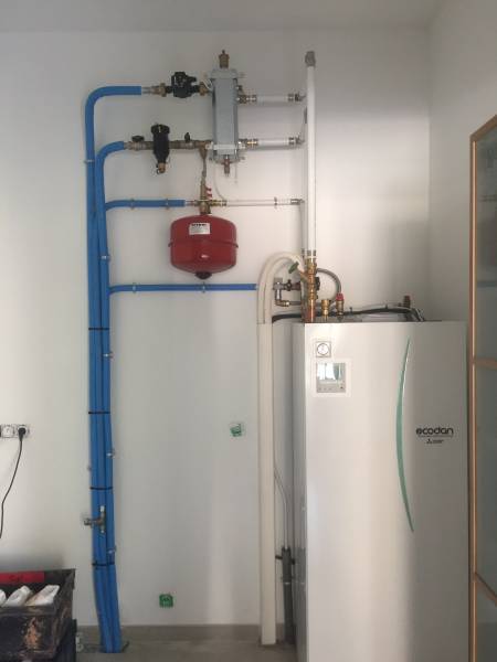 ompe à chaleur assurant également le chauffage. Elle transite à travers des tubes multicouches isolés et noyés dans la mousse de ravoirage et d'isolation du plancher chauffant.