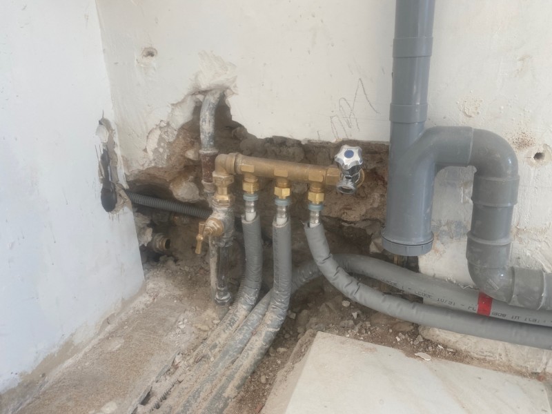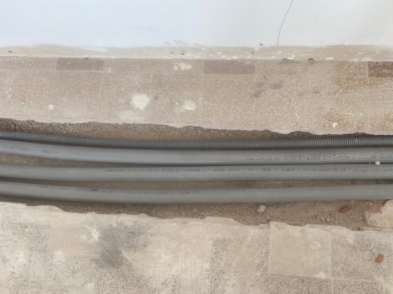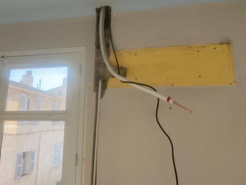 plomberie a été posé au sol pour ne pas garder les anciens tubes de cuivres, dont certains avaient déjà été abandonnés suite à percage avec dégât des eaux.
