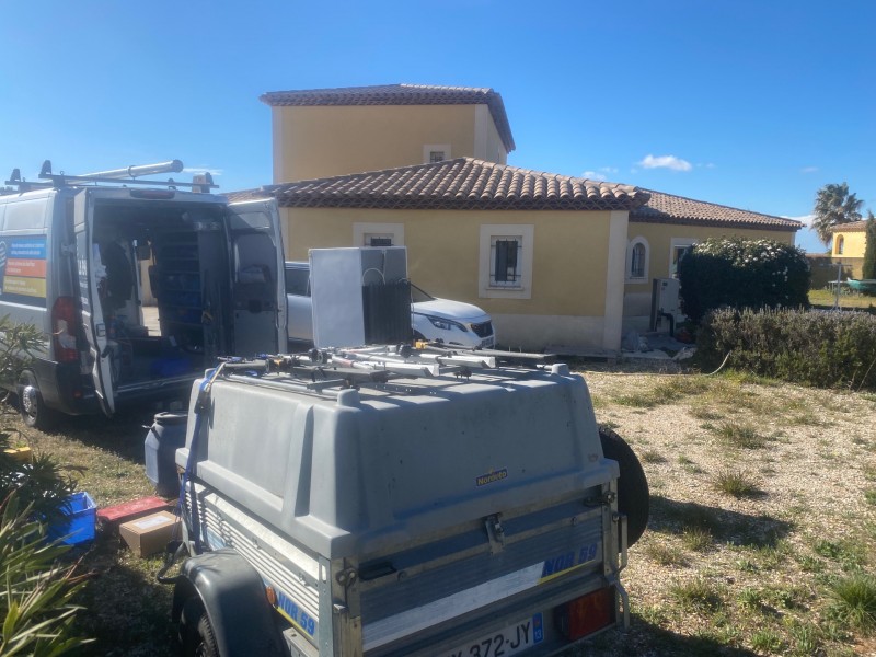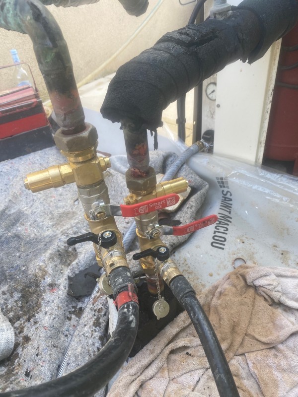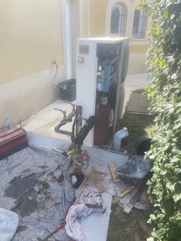 pompe à chaleur et son ballon tampon d’appoint électrique ont été nettoyés sous basse pression et toutes les boucles ont été traitées une à une.